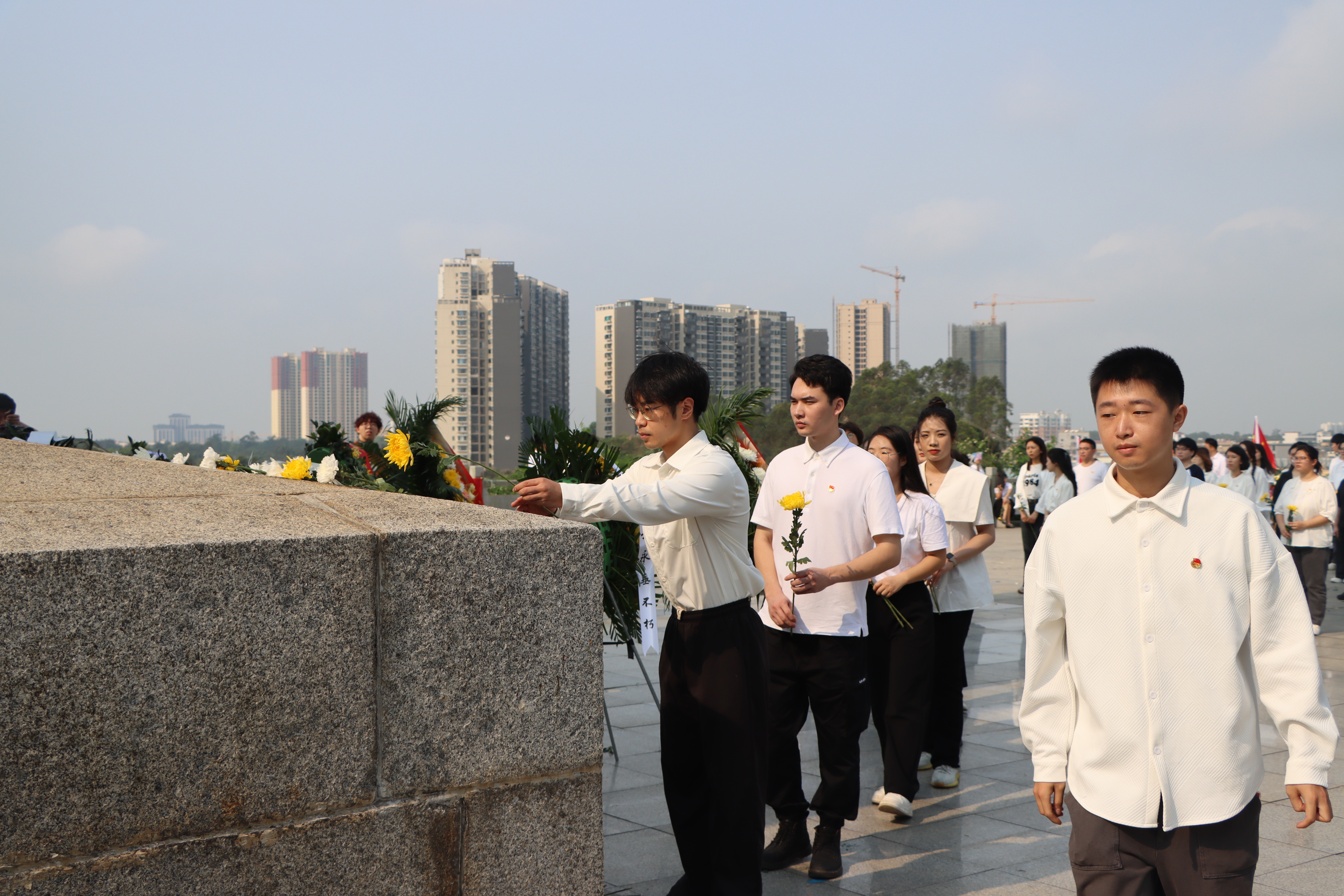 为深入贯彻落实习近平总书记关于烈士褒扬工作重要指示批示精神,缅怀革命先烈丰功伟绩,进一步引导我校师生传承和弘扬伟大的爱国主义精神,树立远大理想,磨练顽强的意志,练就过硬的本领。于4月2日前往合浦县革命烈士纪念碑开展“缅怀先烈寄哀思,踔厉奋发正当时”清明公祭活动,学校党委书记范徽忠、党委委员刘承初、团委书记唐良春以及党团师生代表等100余人参加活动。