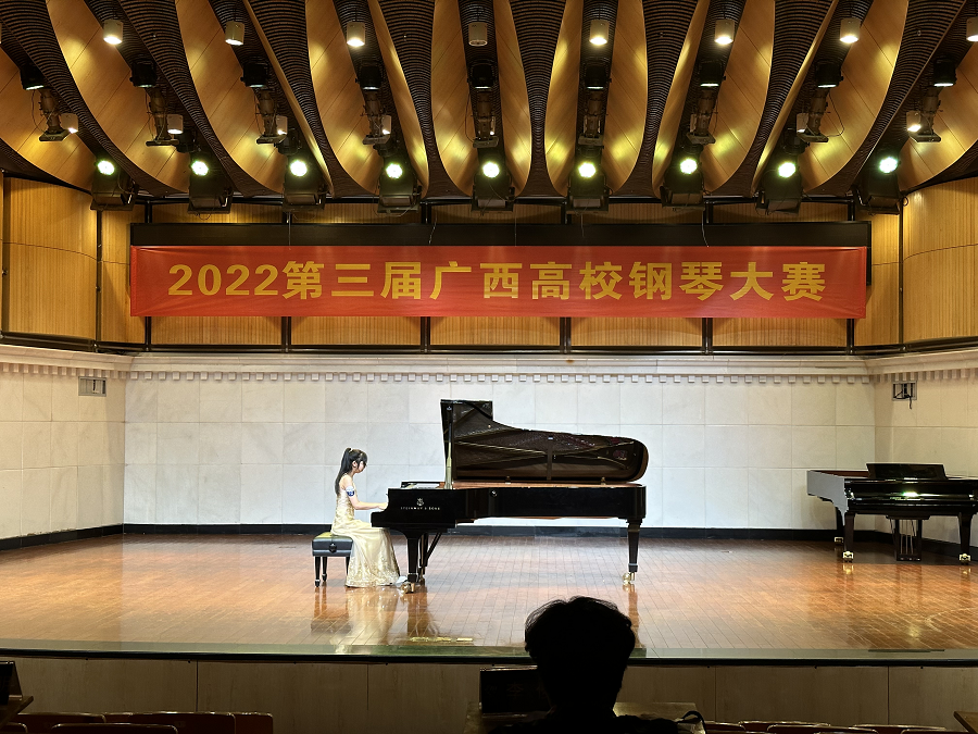 2022年10月28日-30日,第三届广西高校钢琴大赛在广西艺术学院举行。我校人文教育学院学生朱永之、李洁、刘菁菁、梅紫怡代表学校参赛。