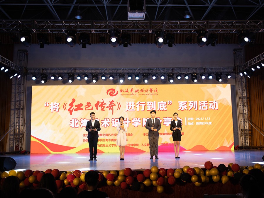 张阳希望全体师生以党史学习教育和红色传奇活动为契机,持续推动红色主题教育融入日常教学和管理,提高党史学习教育、红色传奇活动深度和广度;希望广大教师切实落实“立德树人”根本任务,用好红色资源,讲好红色故事,用红色文化来启迪青年智慧,以红色精神来武装青年头脑,用红色火种激励青年前行;希望广大北艺学子自觉了解“四史”、广西革命史、北海发展史,积极参与红色主题系列活动,在红色传奇中汲取营养,不负韶华、不负人民,在传承红色基因中磨练青春年华,用红色坐标牢牢锚定前进方向。