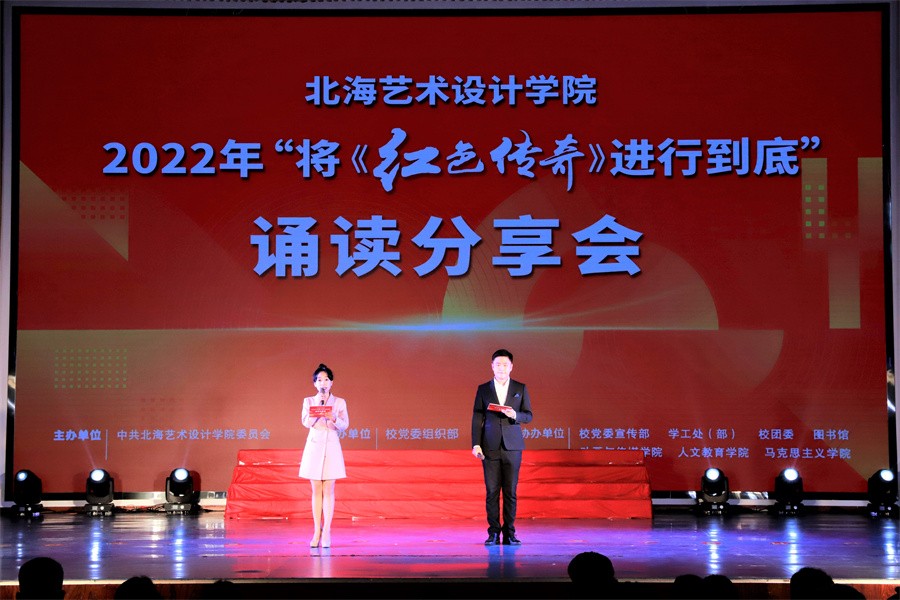 为深入学习贯彻党的二十大精神,进一步推进“将《红色传奇》进行到底”系列活动走深走实,近日,我校在西校区大礼堂举行2022年“将《红色传奇》进行到底”诵读分享会,通过红色故事分享、红色经典诵读、红色舞蹈展演等形式,让现场师生对广西红色故事有更为深入的了解,对伟大建党精神有更为直观的感受,接受一堂生动的党史学习教育课。学校党委书记张阳,党委副书记、副校长彭仁,党委副书记韦静月,党委委员刘承初、王照伟出席活动,各二级学院党总支书记、党政部门中层领导、各二级学院代表、学校党员师生和发展对象及入党积极分子代表共同观看诵读分享会。