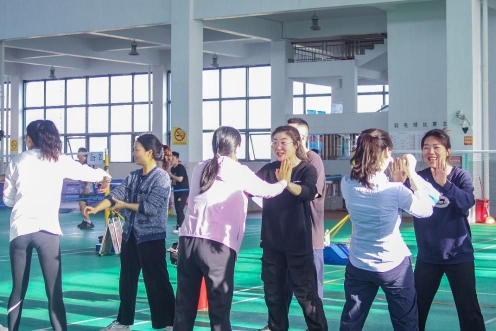 此次活动以团建的方式进行,参加活动的全体女职工分成5个小组开展集体趣味文体游戏,趣味游戏比赛“同心击鼓”“双人推手”“绑腿接力赛”“踩气球淘汰赛”等将活动氛围推向高潮。在游戏中,女教职工们同心合力完成各项比赛项目,为团队荣誉而战,充分展现新时代女职工团结一致、奋勇向前的团队拼搏精神。活动现场气氛热烈,妙趣横生,掌声、加油声此起彼伏,欢笑声不绝于耳。