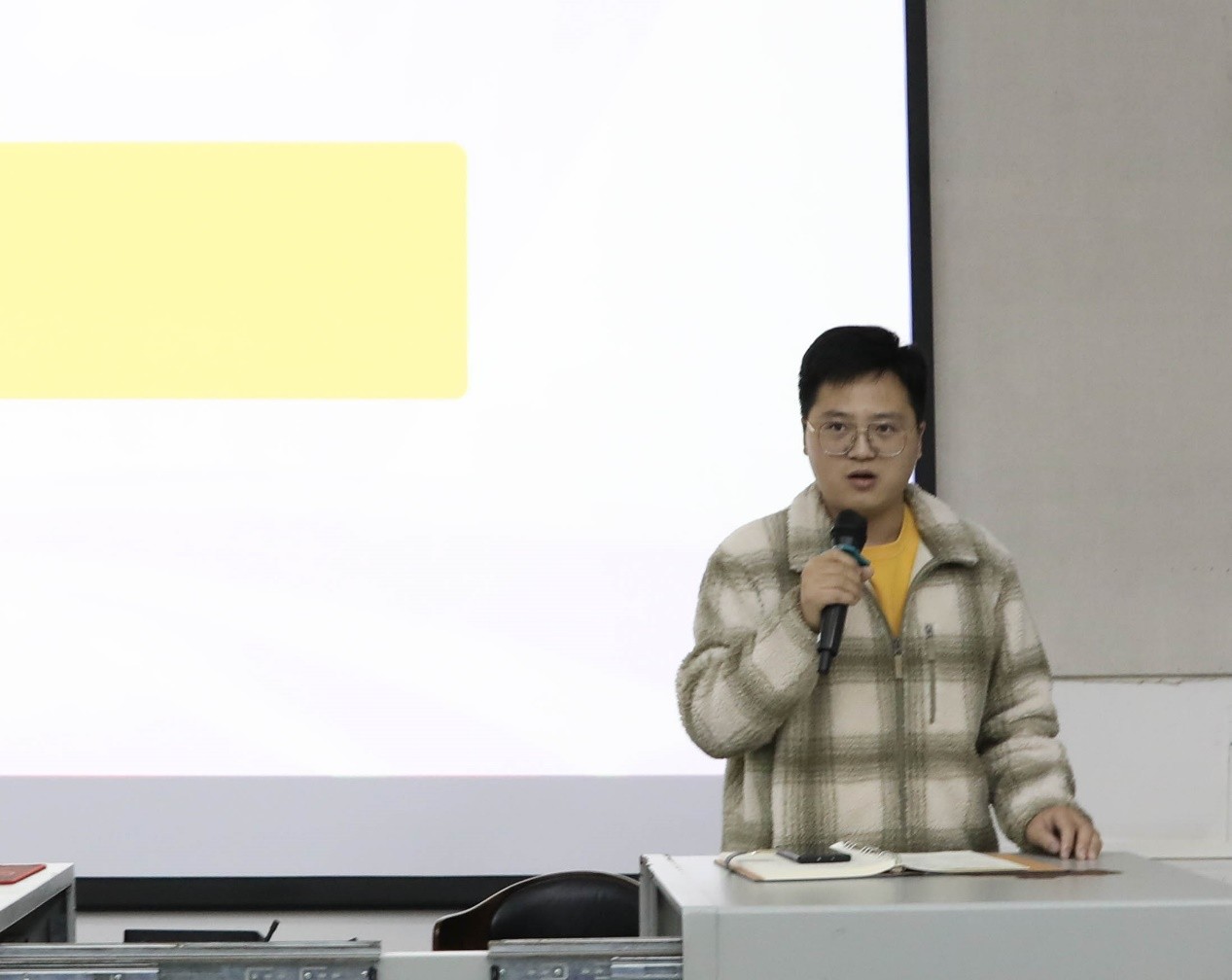 大会第五项,建筑与环境艺术学院分团委书记雷勇发言。首先他详细讲述了干训部的具体工作内容,其目的在于提升干部的各项能力,改变工作思想,提高工作质量。随后,雷勇老师对工作中的不足之处进行了总结,并表示将要进行内部整改,不仅是为了提高分团委的工作能力,也是为了应对接下来的评估工作。最后,雷勇老师强调了团队协调的作用,希望分团委的全体能够紧密团结,为学院的发展贡献自己的力量。