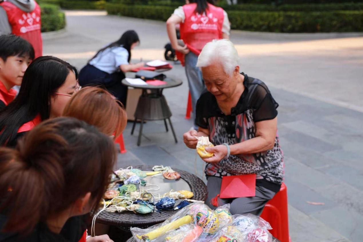 除了物质上的关怀,活动当天我们还在社区特设了茱萸香囊手作环节,让老人们猜谜语,赢香囊,并亲手制作香囊,将这份蕴含着健康与祝福的礼物带回家中,既增添了节日的喜庆氛围,又加深了邻里间的情感交流,共同营造了一个和谐、温馨、充满爱的社区环境。