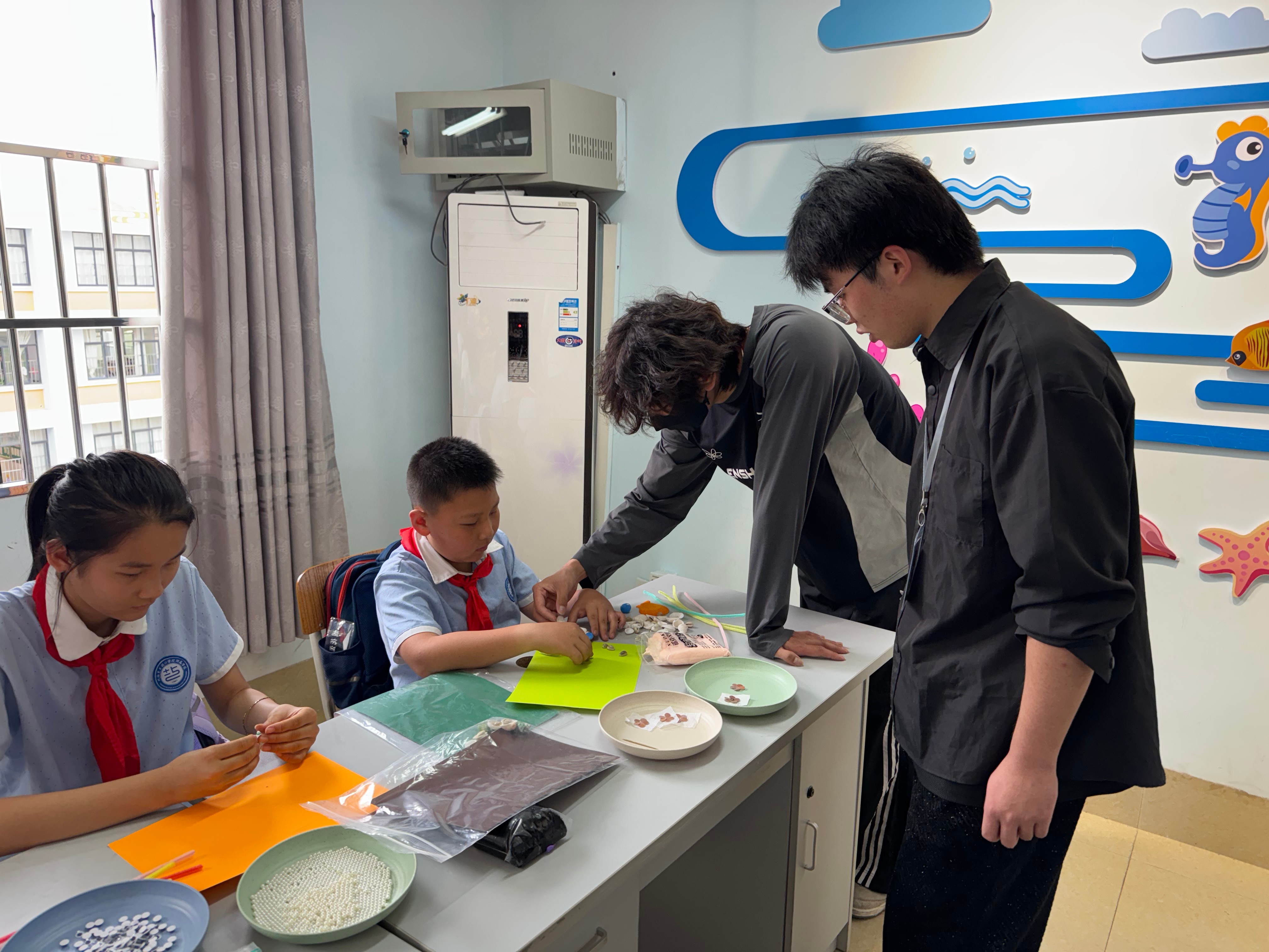 这场跨界合作中,收获成长的不仅是孩子。大学生团队原本设计的贝壳书签、贝壳挂饰等产品,在课堂上被小学生“改造”出了新花样——有孩子把贝壳粘成会“摇头”的卡通章鱼,有孩子提议“贝壳应该能发光”,这些点子让团队惊喜不已。“孩子们的想法特别纯粹,比如用贝壳拼出自己家的宠物狗,这种真实的需求正是我们产品缺少的。”