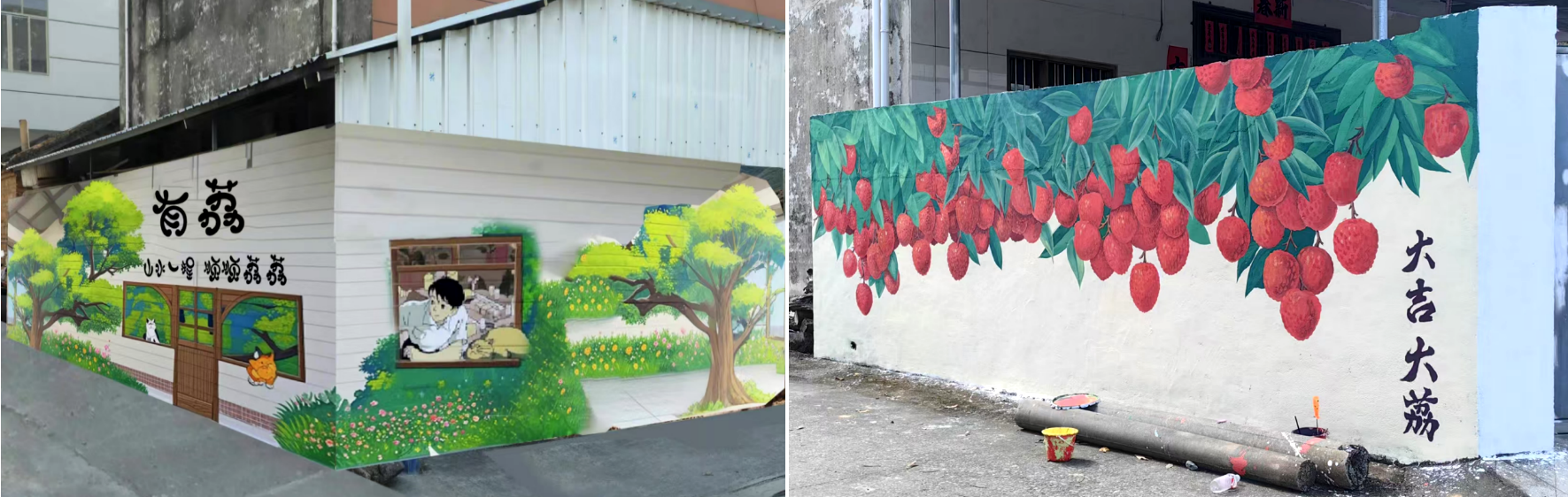 该项目具体为井山村沿街民居提供墙绘设计及绘制服务。主要采用了实地调研法,咨询甲方和村民的意见,通过艺术化的表现手法,进行墙体的绘制。