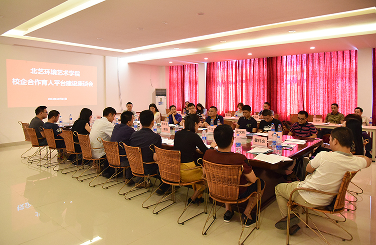 2016年10月16日上午9点,由环境艺术学院就创业办公室、学院办公室承办的“北艺环境艺术学院校企合作育人平台建设座谈会”在我校西校区行政楼会议室召开。环境艺术学院党总支书记、常务副院长王照伟,环境艺术学院设计教研主任郭瑞,环境艺术学院实践教学教研室再主任黄圣鑫,北海市建材与家居的企业代表们共同出席此次座谈会。