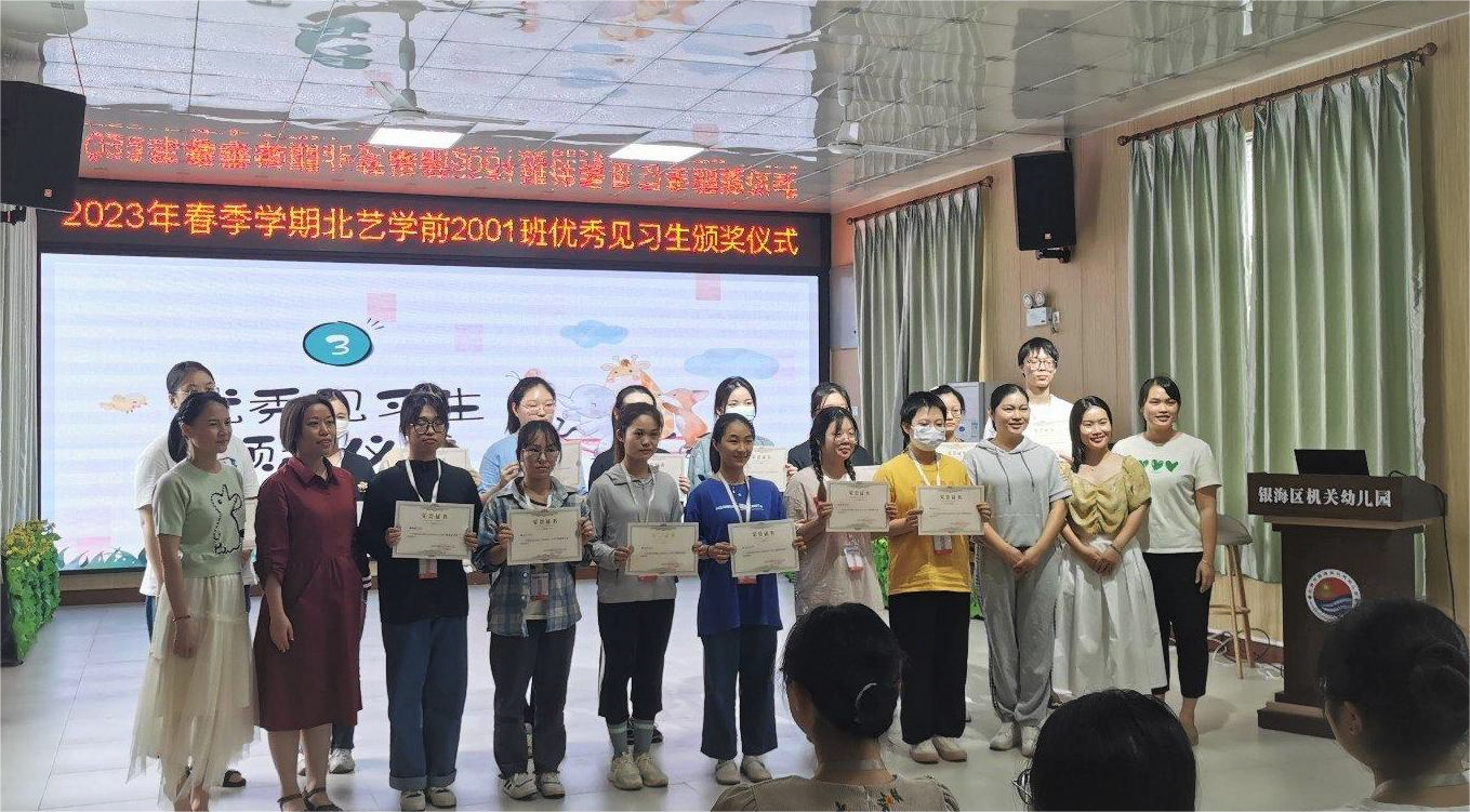为加强学前教育大三学生综合实践运用能力,人文教育学院学前教育专业于2023年4月17日至28日组织2001、2002、2003班的全体同学分别到银海区机关幼儿园、银海区第二幼儿园、海城区第一幼儿园进行为期两周的教育见习。