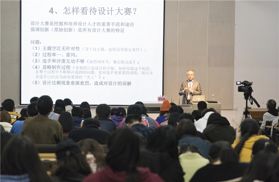 2019年12月7日晚7:30于西校区伦理楼107,清华大学美术学院李当岐教授为我校师生带来了一场题为《关于“设计”之我见》的精彩讲座,现场座无虚席。本次讲座由我校副校长王斌主持。