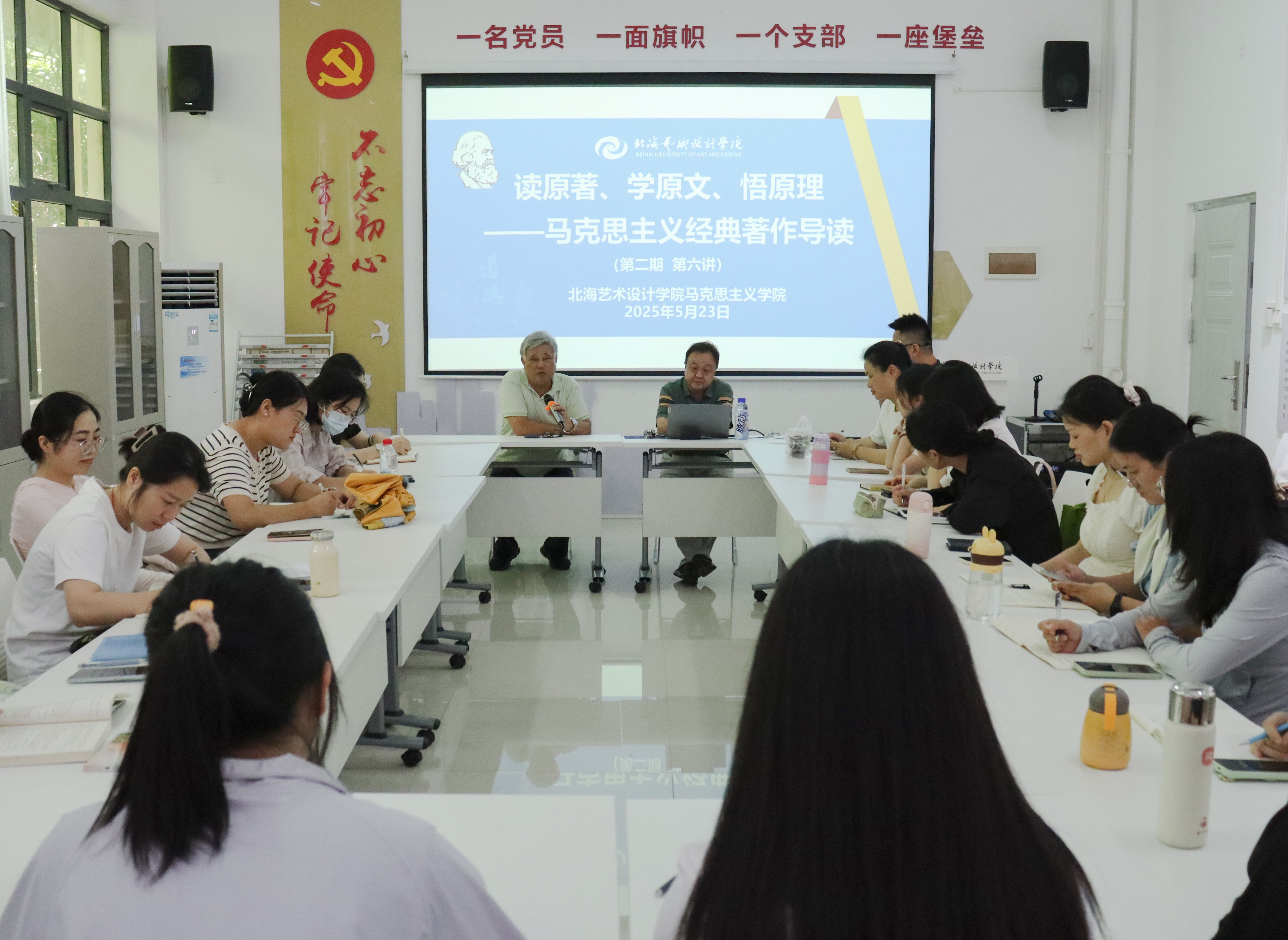 据悉,第二期马克思主义经典著作导读系列活动共六讲已全部开展完成,下个学期,我院将创新导读活动形式,由中青年教师接力担任主讲人,通过学习分享、互动研讨等方式,充分发挥中青年教师的青春活力特点,让导读活动多元多样,进一步促使全体中青年教师在原著研读中感悟思想伟力,在交流互鉴中深化理论认知,切实做到学思用贯通、知信行统一。(黎毅/摄)