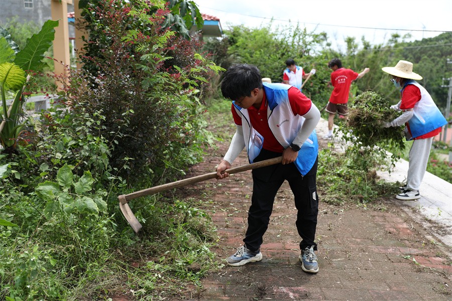 (志愿者在红锦村进行乡村清洁)