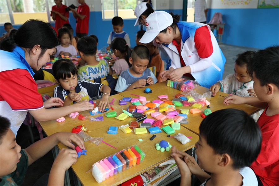 支教关爱服务团在红锦村小学开展手工、音乐、绘画、口才小课堂,发挥所学专业知识技能,把艺术课程带进乡村小学,传授给乡村学生。我校志愿者还对该小学进行了爱心捐赠,为乡村学生送去爱和温暖,展现了新时代大学生助人为乐、奉献爱心、担当作为的良好风貌。