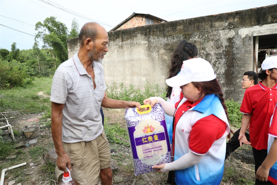 (志愿者在红锦村各自然村对留守老人进行关爱)