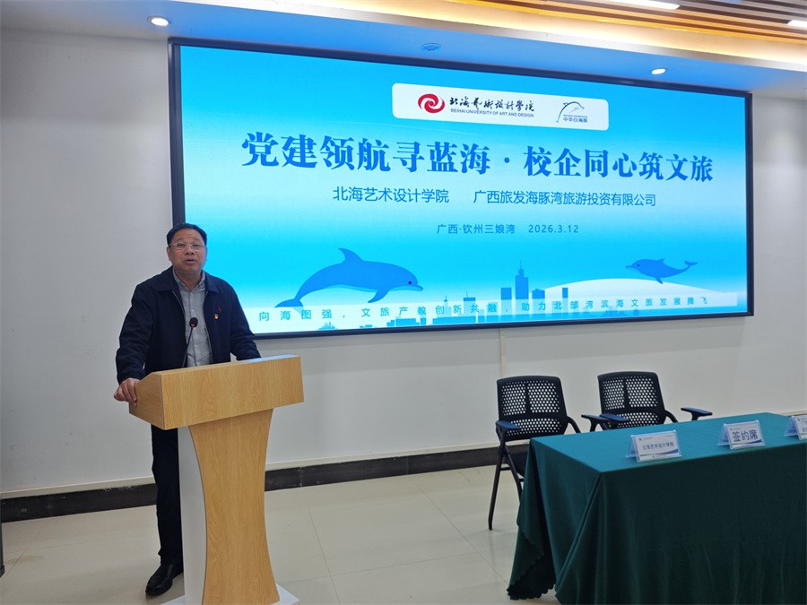 为深入贯彻新时代党的建设总要求,全面深化校企党建共建与产教深度融合,充分发挥高校专业优势与企业产业优势,搭建资源共享、优势互补、协同育人的交流平台,精准拓展毕业生就业岗位,助力文旅产业高质量发展,3月12日上午,我校党委书记覃宪儒率队赴广西旅发海豚湾旅游投资有限公司开展访企拓岗暨校企合作交流活动。副校长陶立阳,校长助理、影视动画学院党总支书记张帆,校长助理、设计艺术学院院长李林平,校长助理、美术学院执行院长龚为,美术学院党总支书记韩玮,设计艺术学院党总支书记黄锦等相关负责人参加活动。此次活动聚焦强化校企、凝聚党建合力,推动专业教学与文旅实景实践深度衔接,助力学生专业技能落地提升,深挖文创开发、宣传推广、研学实训价值,实现党建工作、文旅产业、专业育人同频共振,打造“党建+文旅+专业”校企共建特色品牌,构建长效合作、互利共赢的发展机制。