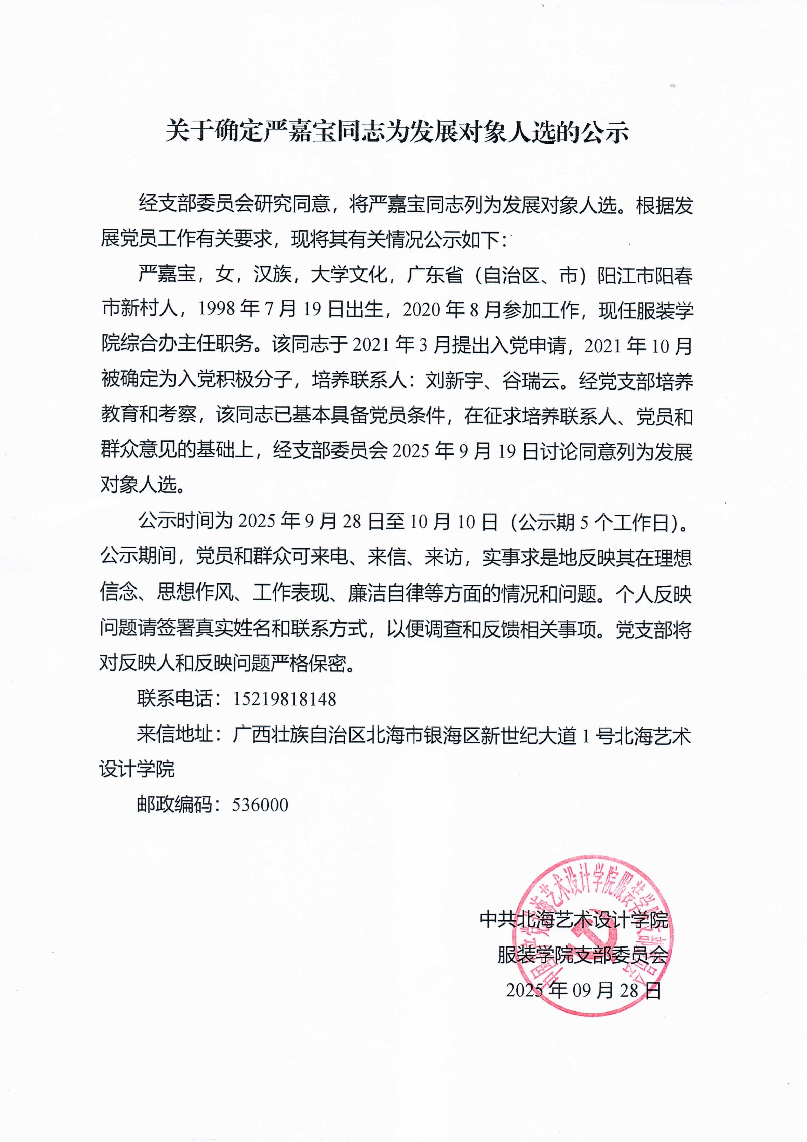 服装学院团总支2025下半年 入团积极分子人选公示名单