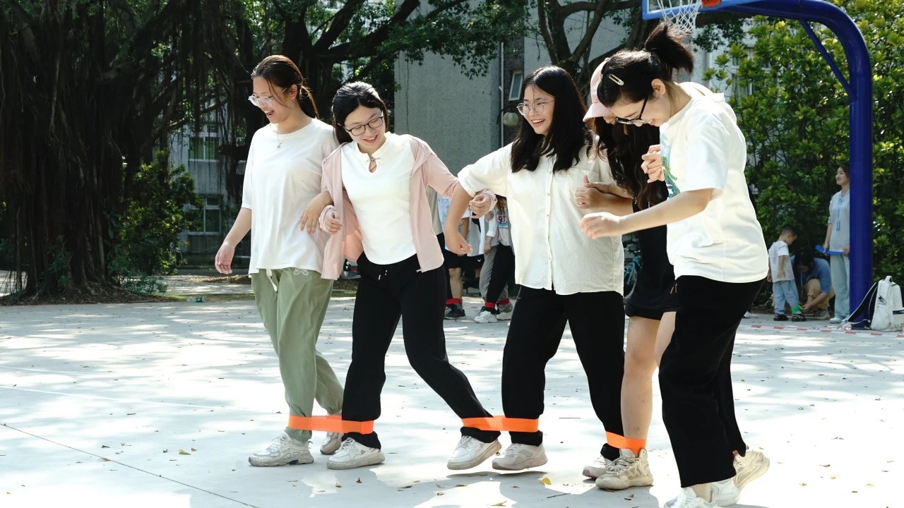 这个游戏充满了趣味与挑战。只见同学们使出了浑身解数,有的人扭动得如同电动马达般迅速,有的人则表现得略显生疏,他们的每一个动作都充满了活力和个性。这个环节不仅让同学们在轻松愉快的氛围中感受到了运动的乐趣,更增进了彼此之间的友谊。