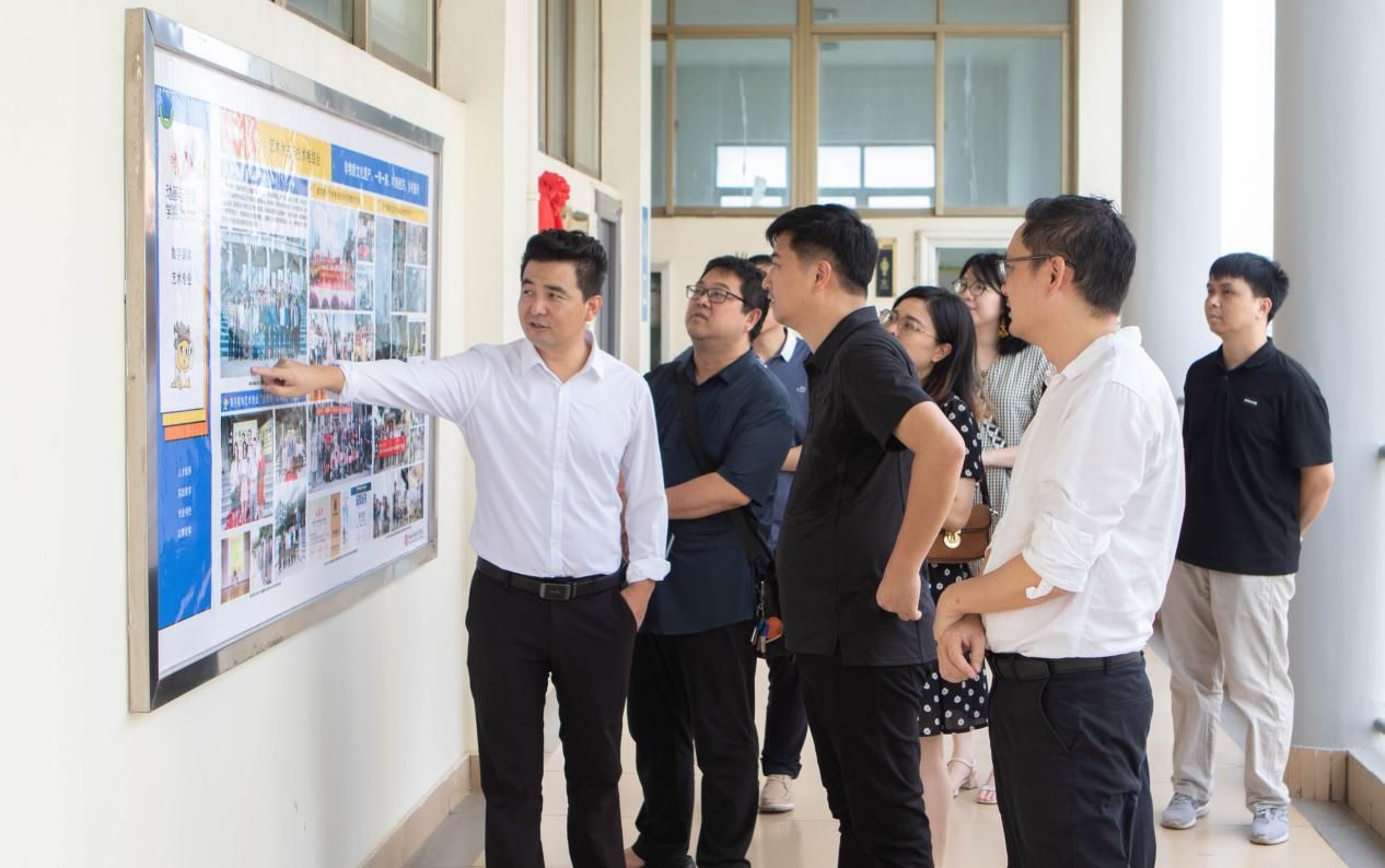 行程伊始,在动画与传媒学院院长庞定坤、党委书记孙永辉、实验室主任刘涛、副主任黄燕程等领导的陪同下,北海龙腾半岛网络技术有限公司一行参观走访了动画与传媒学院各工作室、实验室,孙永辉书记结合展板展示了学院工作室、实验室建设,校企合作及实践教学成果等方面内容,随后参观了图书馆一楼的海洋文化、服务地方主题展。参观过后,双方在座谈会上就搭建校企合作平台,紧密开展校企合作对接,探索产教融合模式和人才培养方案,积极打造校企合作共同体等方面展开深入交流。