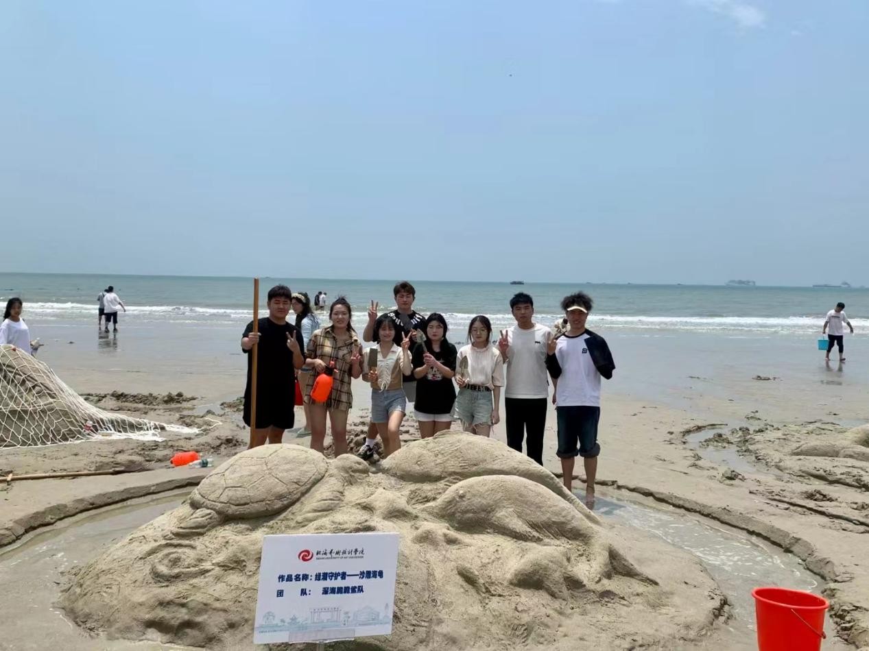 建筑与环境艺术学院学子在沙滩上尽展饱满热情与青春风采。在沙雕、沙滩排球、袋鼠跳、同舟共济、巨人脚步、水到渠成比赛项目中挥洒青春汗水,建环学院喜获第二十一届沙滩运动会团体总分第二名。(建环学院学工办/摄)