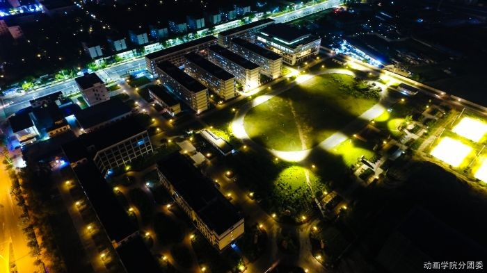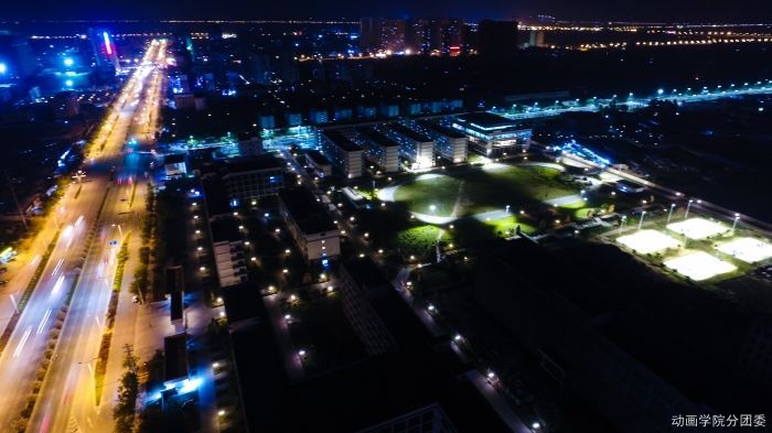 你见过晚上的北艺吗?校内暖黄的路灯摇曳着温馨的光芒,操场上的人少了,于是动物们开始窃窃私语。植物们随着夜里的风,舒服的伸着懒腰。校外的蓝色灯光成了北艺最美的衬托,冷暖交织、美轮美奂;加上特殊的视角,让人仿佛置身在满是星光的梦中。