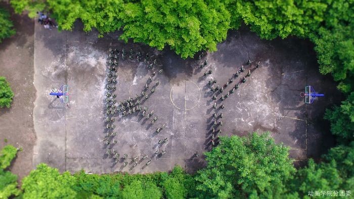 每一年,北艺都会被注入新鲜的血液。2017届可爱的新生,在军训的过程中,运用军训所学的列队技巧,配合航空拍摄,为北艺做了一张别出心裁、可爱又充满魅力的“明信片”。
