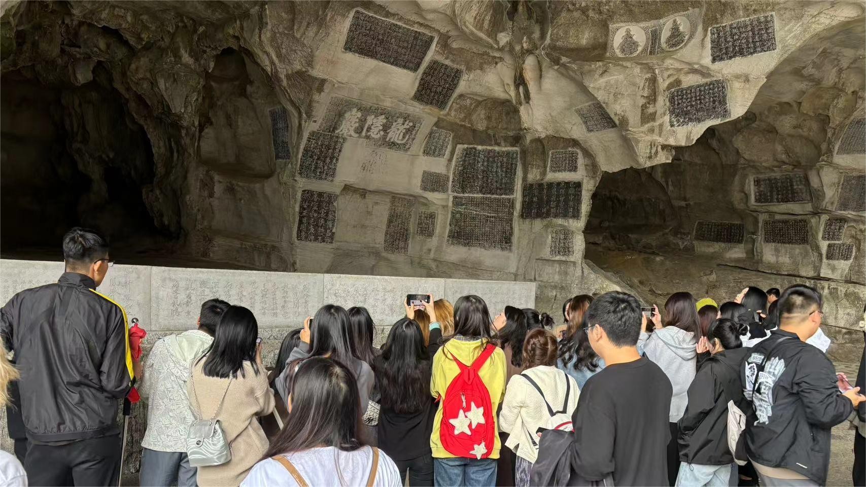 通过此次专业采风,同学们深切地感受到桂林深厚的历史文化底蕴,通过对地域性特色碑刻摩崖艺术的深入了解,丰富个人学习储备、积累个人创作素材,为书法艺术创作提供了更多元化的方向。随着本次专业采风课程的圆满结束,桂林的红色文化、山水风光、民俗风情给同学们的深刻印象也将呈现在此次采风创作成果中。(左云飞 摄)