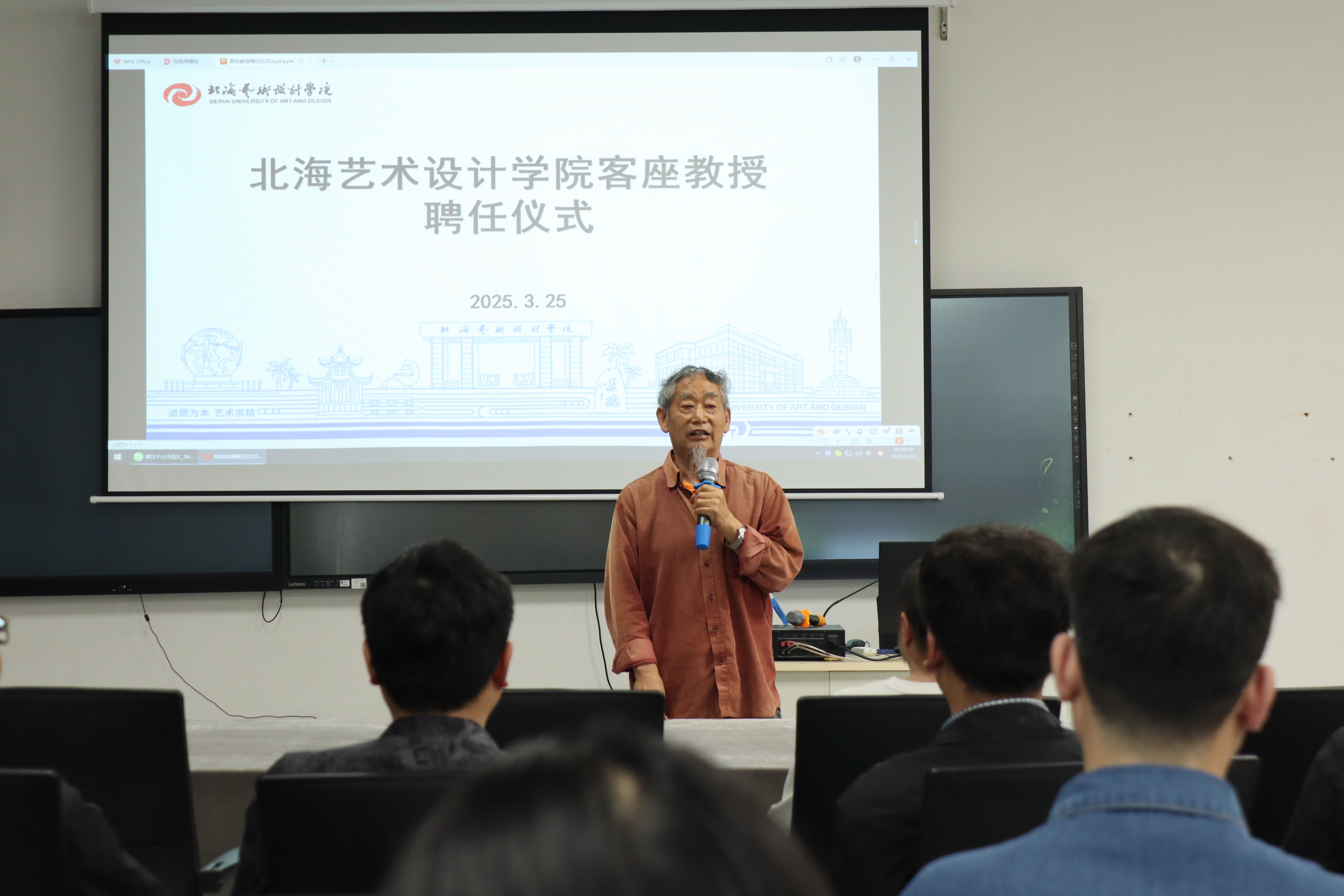 2025325日下午,书法学院客座教授聘任仪式艺德楼507书法学教研室隆重举行本次活动正式聘任曲阜师范大学张韬教授为北海艺术设计学院客座教授。书法学院的教师们齐聚一堂,共同见证了这一重要时刻。