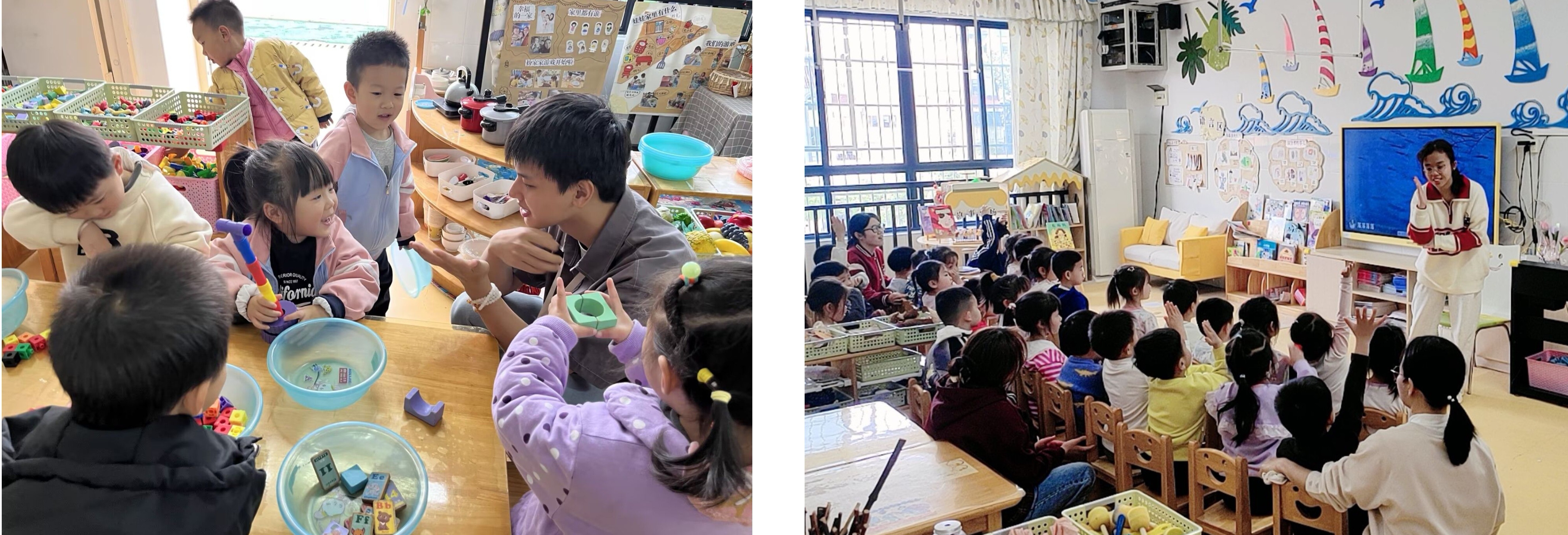 教育见习期间,同学们积极参与了幼儿园的日常工作,包括协助管理、组织活动、课堂教学等,认真学习一线教师的活动组织方式和问题处理机制。通过实践操作,同学们收获良多,进一步提高了自己的教学技能和管理能力。