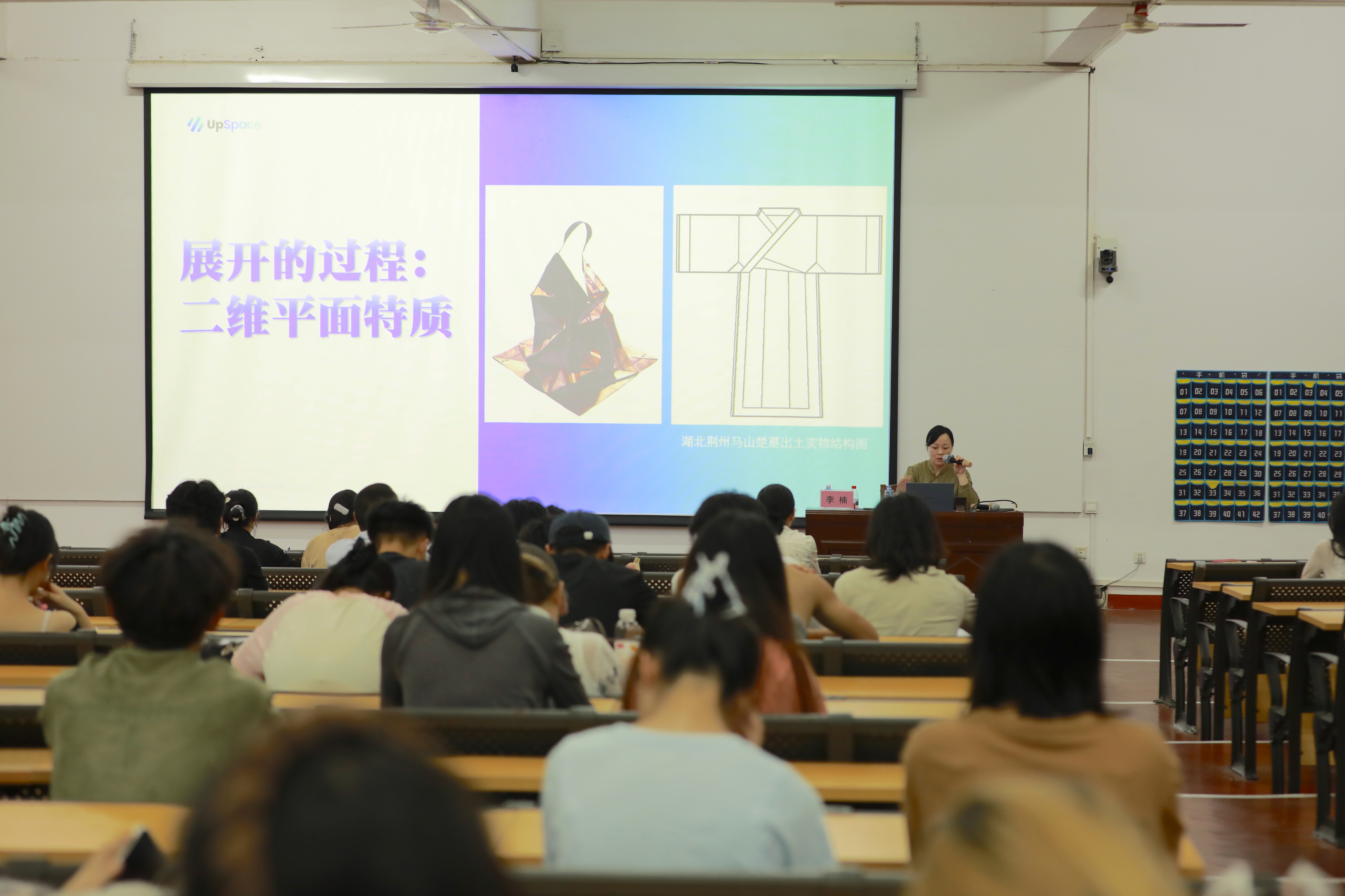 李楠教授还特别分析了著名服装设计师Issey Miyake“从A到Z的技术革命”设计理念,强调了其服装设计的自然性,展现非人为的刻意为之的特点。同时,她还讲述了东方服装设计的二维平面状态,展现衣服不同新颖的姿态。