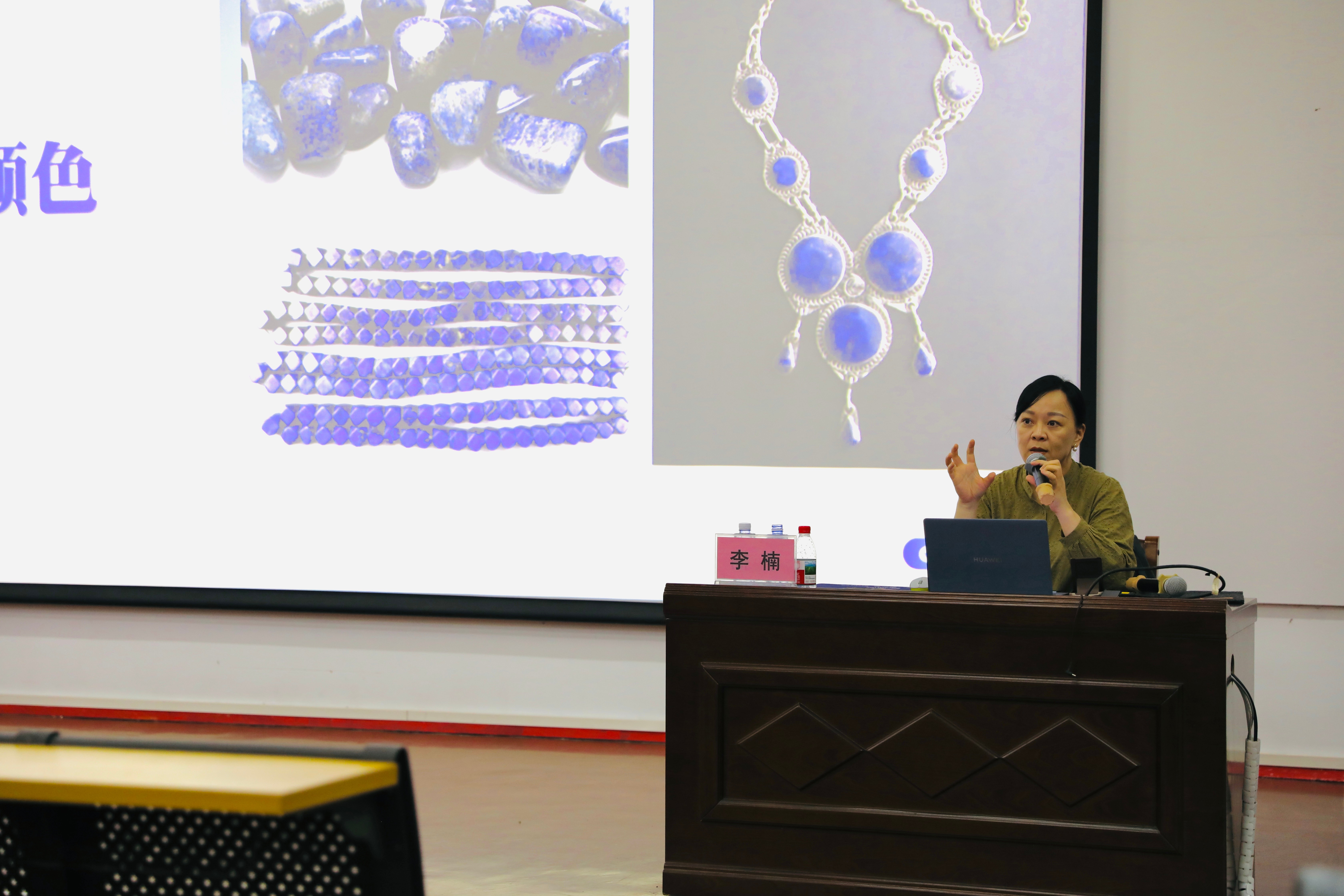 讲座伊始,李楠教授从制色技术介绍了天然矿物颜色、化工原料、动物颜色、植物颜色、矿物颜色、蓝铜矿颜料等古早颜色的提取方法,还阐述了制色技术演变与发展,进而引导现场师生掌握色的感知,并了解服装的质感与材料的关系。