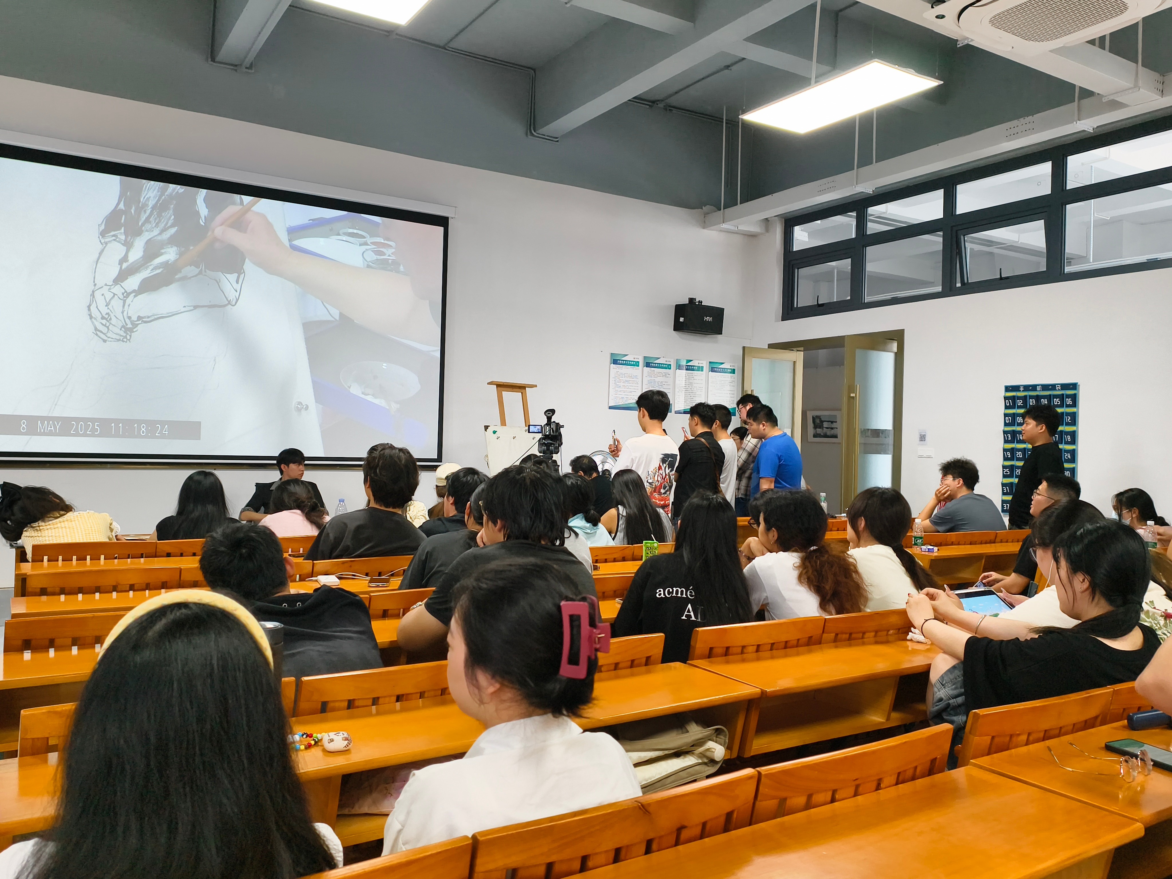 本次讲座将学术理论与现场实操紧密结合,不仅加深了师生对写生艺术的理解,更为艺术实践提供了切实可行的方法论。参与师生纷纷表示,李洋教授的讲解与示范极具启发性,为今后的艺术创作带来了全新灵感与方向。(何汝鑫 王金凤 摄)
