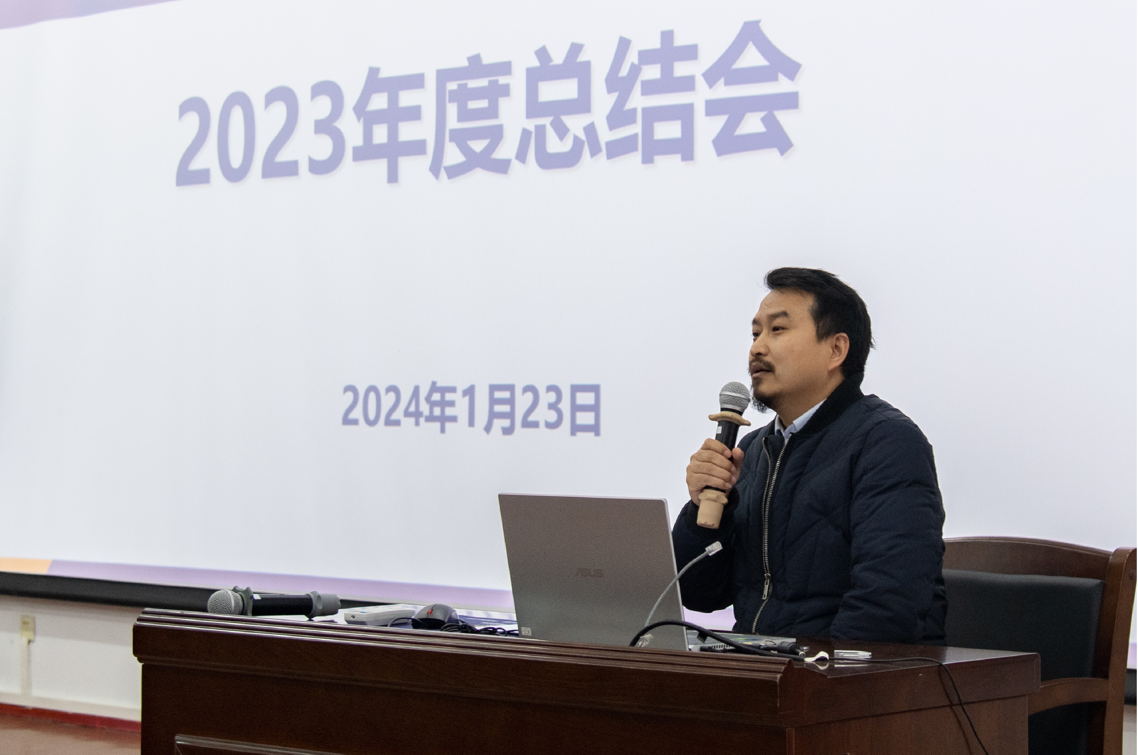 综合办副主任陈力行汇报了综合办在学院日常管理事务和教学事务方面工作的完成情况。并表示,未来综合办将继续秉持严谨、高效的工作态度,为学院的稳步发展提供有力保障。学工办主任曲忠成进行了2023年度学生工作的总结汇报。曲主任从多个方面详细介绍了学生工作的成果与经验,包括学生思想政治教育、学生制度管理工作、奖助学金工作、突发工作、修复退外宿学生调换寝室以及就业等工作。实验室主任郑哲翰对2023年实验室工作进行了总结汇报。郑主任详细介绍了实验室在基础设施建设、安全管理以及校企合作等方面的进展情况。同时,他也指出实验室工作中存在的不足之处,并提出了改进措施和未来发展的计划。