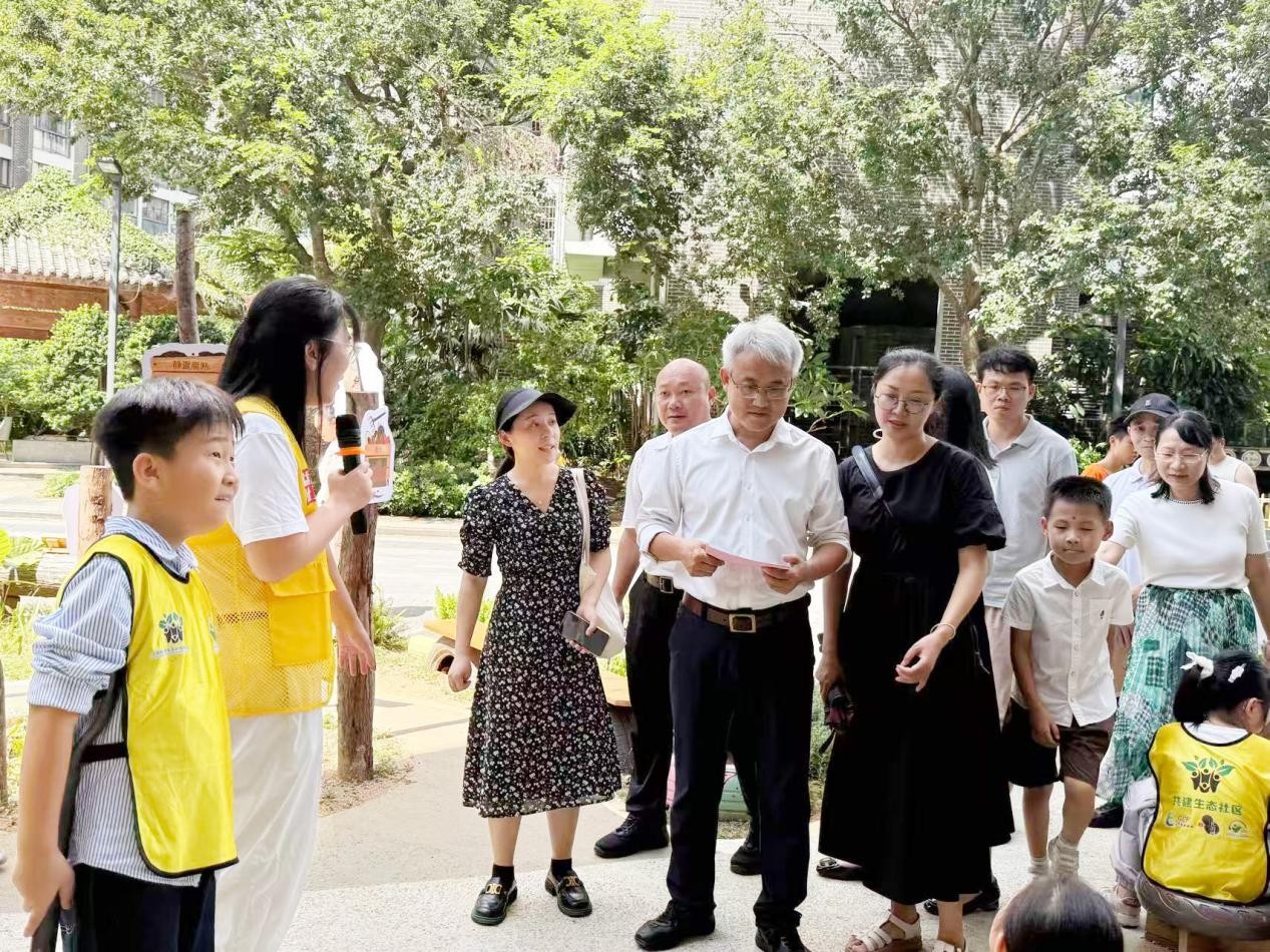 社区项目负责人黄光燕向蔡院长等讲解儿童口袋花园