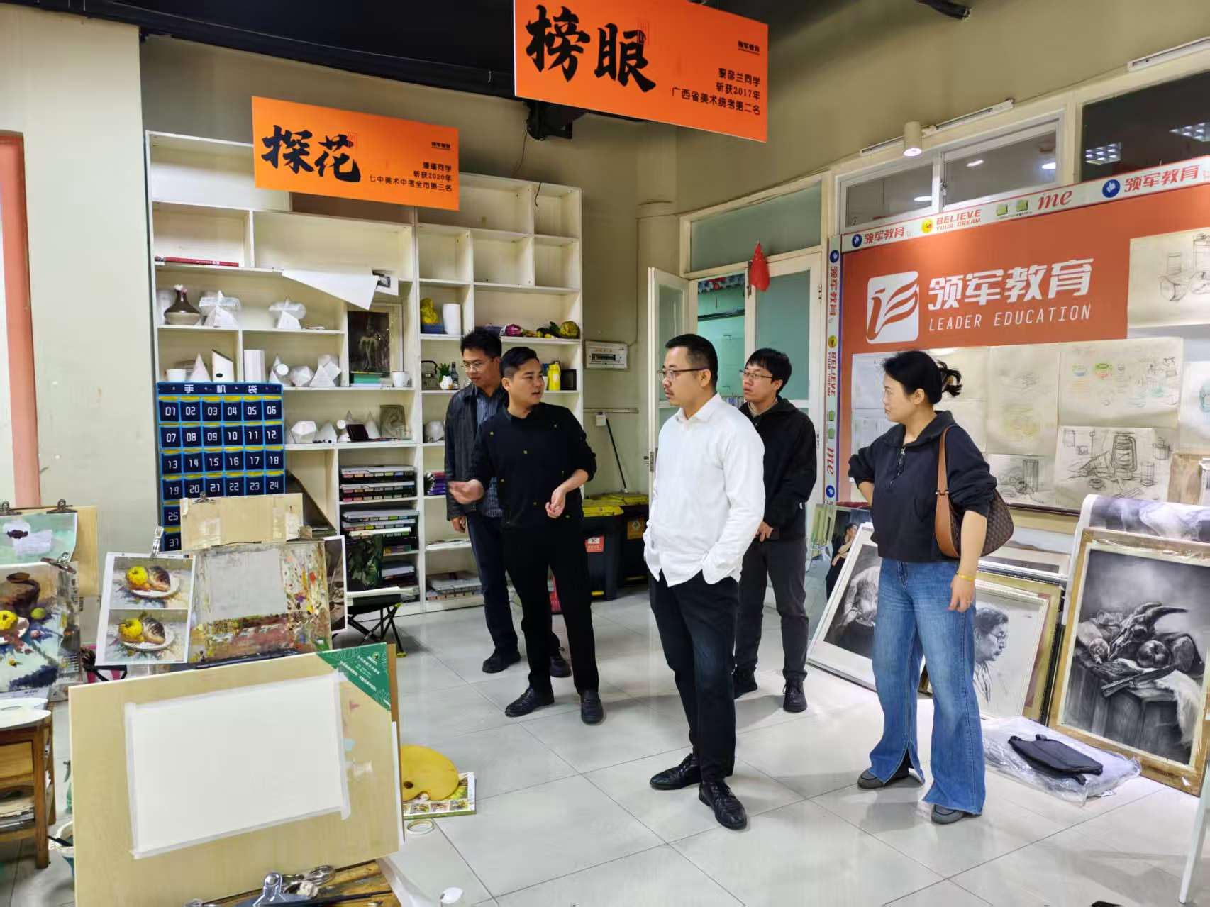为深入拓展毕业生就业渠道并强化产教融合,2026年3月13日上午,由美术学院院长、校长助理龚为,副院长肖玺,副院长林昌华,综合办公室主任刘勇生及美术学教研室主任郭晓山组成的访企拓岗专项行动团队,前往北海领军画室与大道美术培训学校开展专项交流访问。此次活动聚焦企业人才需求、实习实训平台建设及行业发展趋势,旨在为学生构建高质量的实践与就业平台。