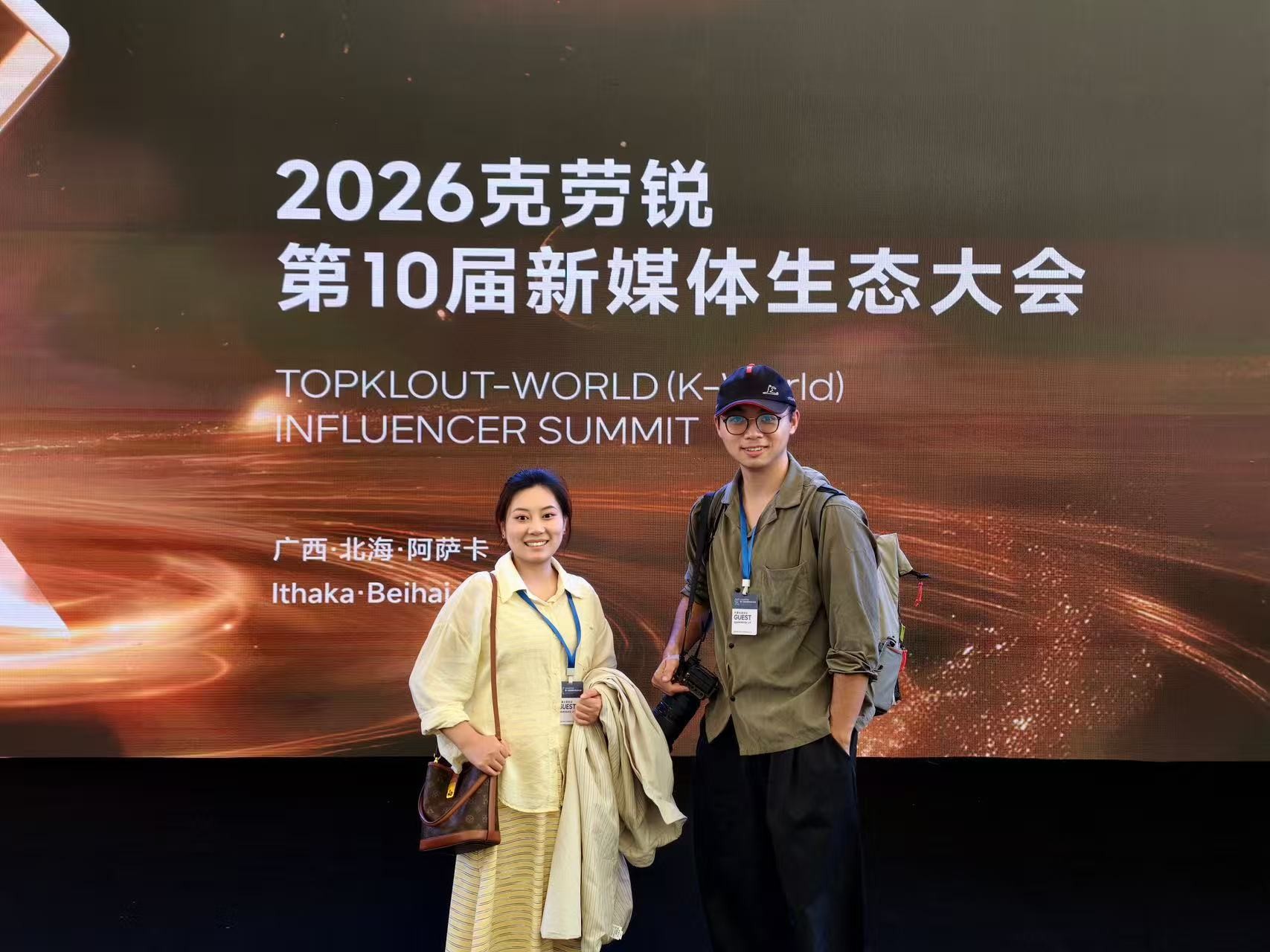 2026年3月20日,北海艺术设计学院副校长陶立阳、美术学院执行院长兼校长助理龚为、副院长殷声,以及摄影教研室部分教师、23/24/25级摄影专业学生代表一行人等受邀参加2026克劳锐第10届新媒体生态大会之社交媒体AI虚拟形象设计大赛终审路演活动。
