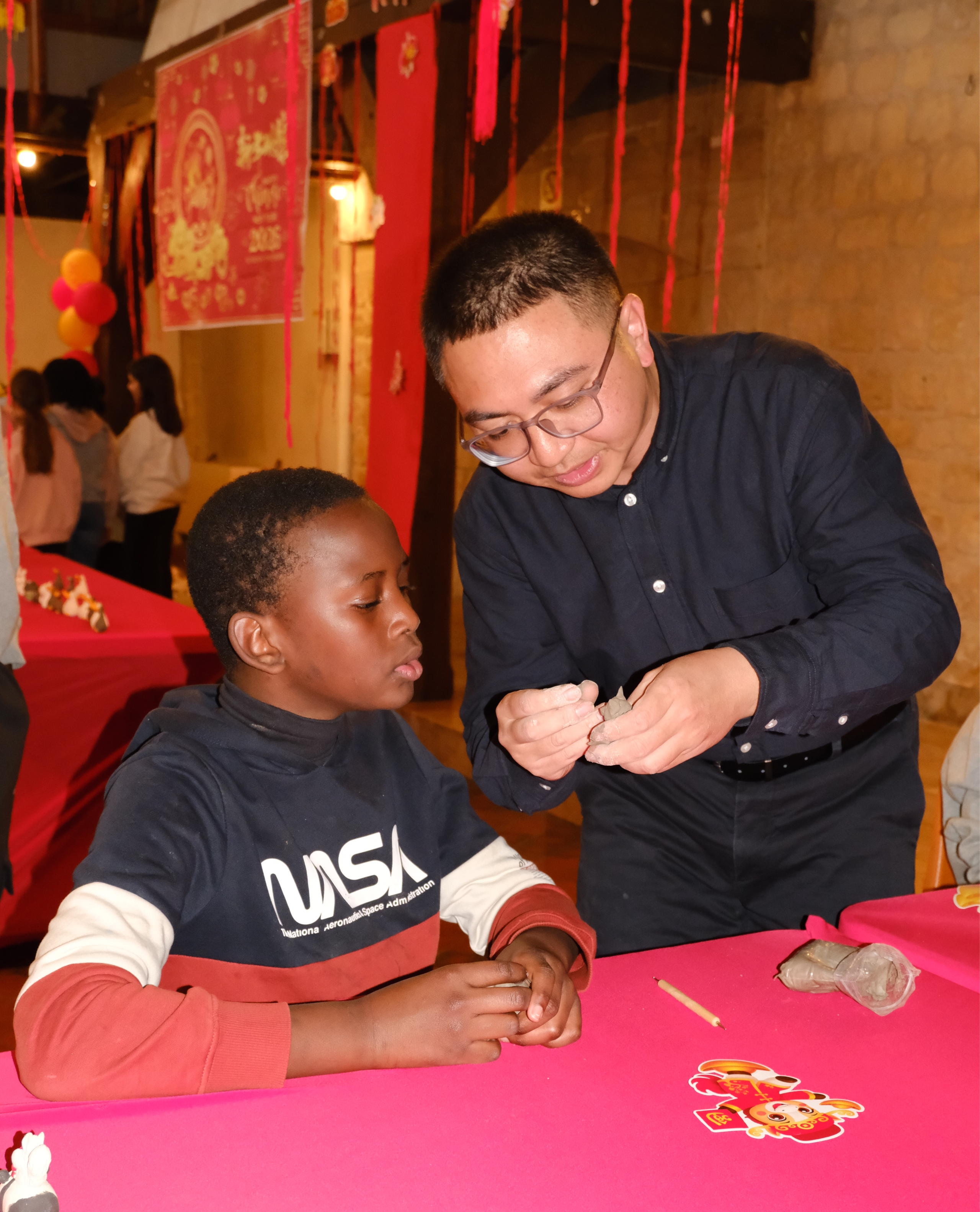 2月19日,在法国勒布朗梅尼勒市韩博副市长的倡议与统筹下,市政府联合教育、文化等多部门形成协同机制,组织学生参与中国非遗展示与互动课程。教师团队走进当地多所院校,开设陶瓷手作、簪花、篆刻、传统手工葫芦等非遗技艺分享课程。我院教师徐志令老师以传统陶瓷手捏成型工艺为纽带,在校园课堂进行现场制作、展示、交流。在校园学堂学生们通过“可观、可学、可参与”的沉浸式体验陶瓷手作体验,可以近距离欣赏这些精美的艺术作品,还能够亲手参与制作与体验,在“看、学、做、悟”中,触摸中国传统陶瓷工艺的当代生命力,使他们切身感受中华文化的独特魅力,中国经典传统陶瓷文化真正融入城市生活场景,激发学生对世界多元文化的兴趣。