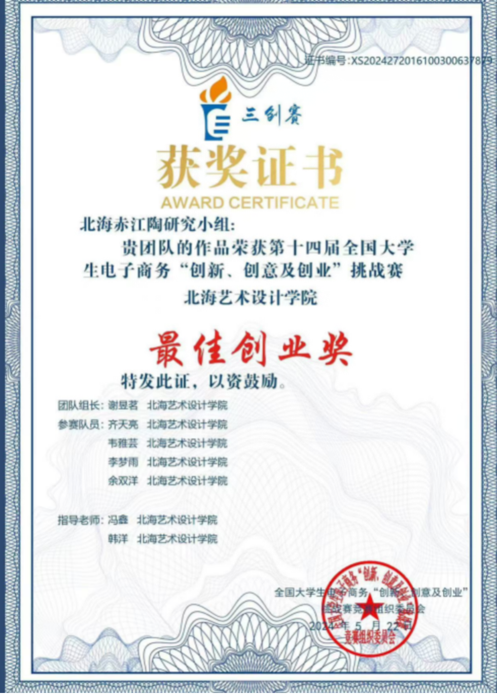 2024年5月 论文《北海赤江陶瓷工艺实践研究》被《学习周报》社评为优秀论文一等奖