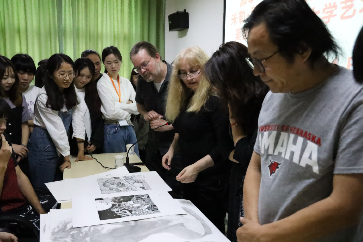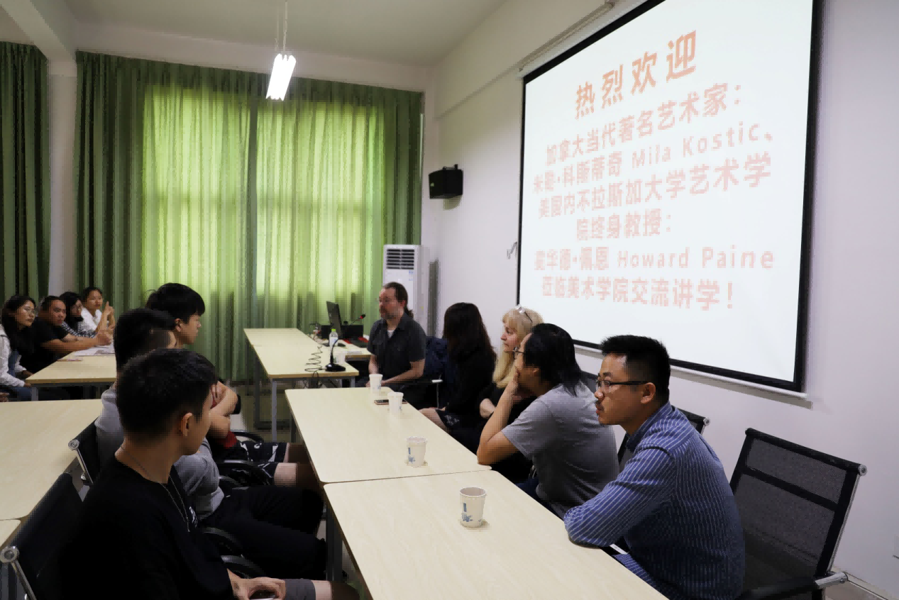 5月8日上午,我校邀请加拿大当代艺术家米勒·科斯蒂奇Mila kostic与内布拉斯加大学艺术学院终身教授霍华德·佩恩Howard paine莅临美术学院做交流讲学。本次学术交流活动不仅是为了提高美术学院学生的综合能力,同时能让学生了解更全面、更前沿、更新奇的欧美行动派绘画。