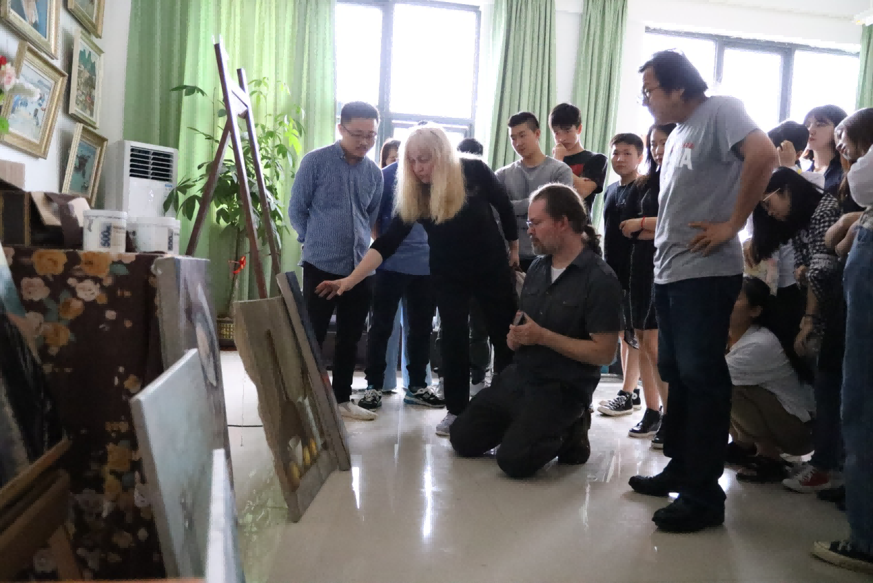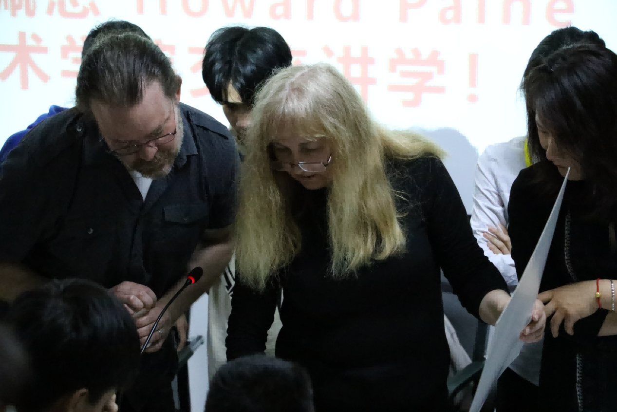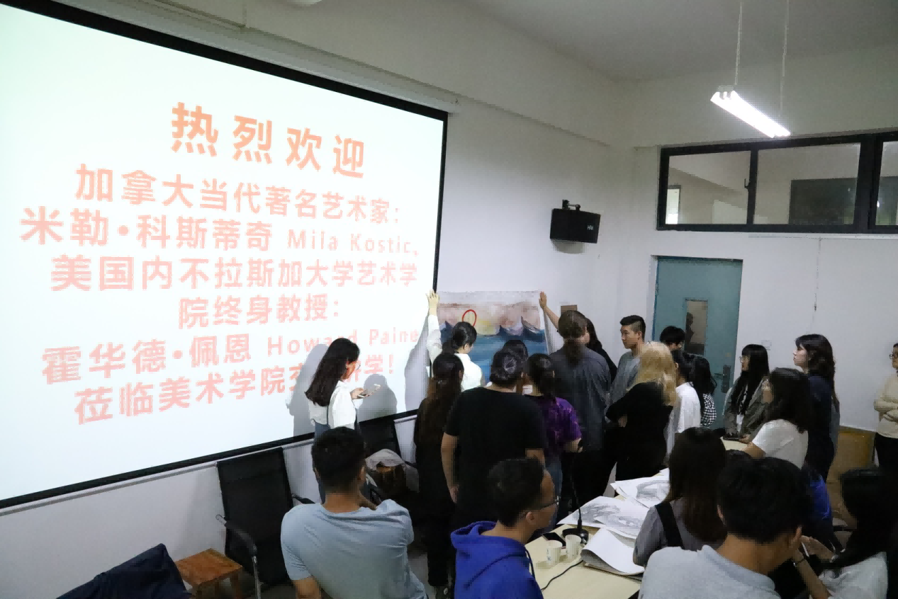 随后,美术学院领导为此专门请米勒·科斯蒂奇Mila kostic与霍华德·佩恩Howard paine绘画专业同学进行零距离的指导和交流。同学们认真聆听艺术家的创作趣事、艺术观点、了解到了当代最前言艺术信息,拓展了视野,期间很多同学积极发言提问,艺术家对于学生提出的问题都进行了认真细致的解答。