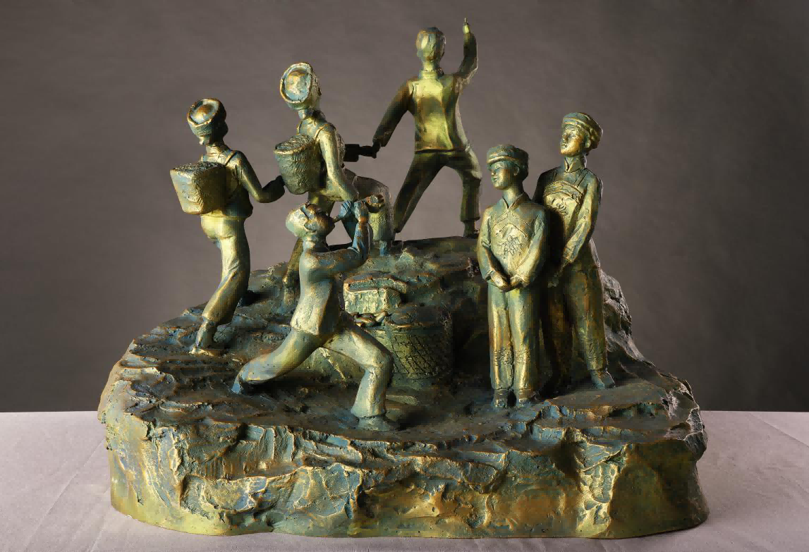 然而出乎意料的是,我们班坚持到最后居然真能做出三件紧扣题材和思想明确的艺术作品,它们分别是孙浩的《茶歌》、黄健武的《舞芦笙》和张尧的《那山那歌》,这三件作品光草图就被我否定了十次有余,泥稿更是耗时两个月。再到玻璃钢翻模,最后上色,他们都表现出了惊人的毅力。