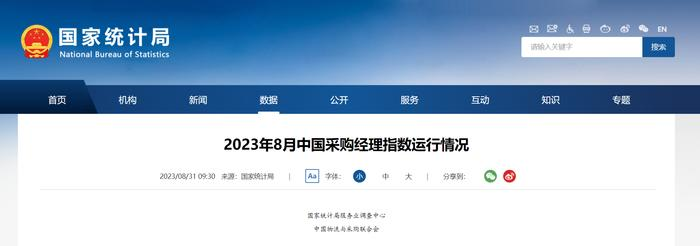 2023年8月31日,国家统计局服务业调查中心和中国物流与采购联合会发布了中国采购经理指数。
