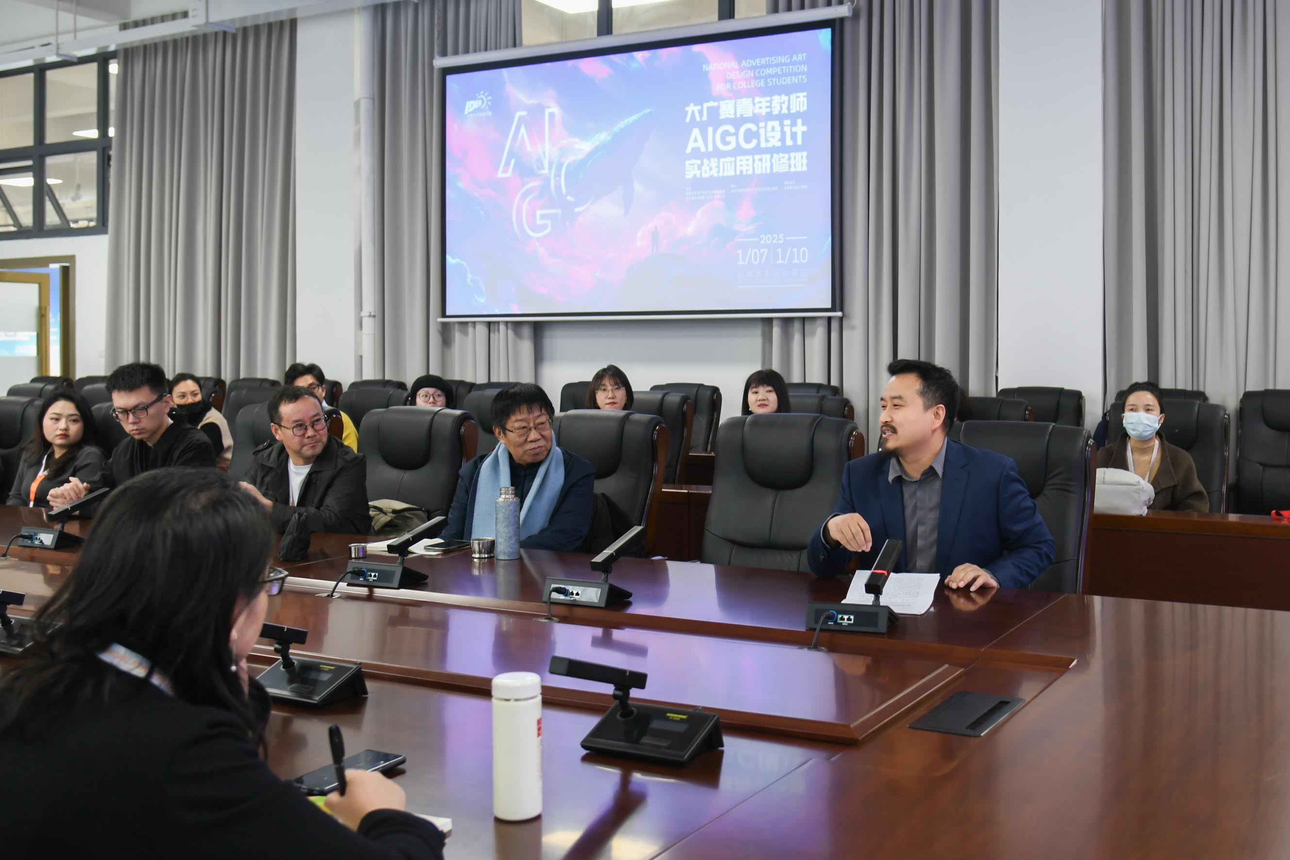 2025年1月7日,全国大学生广告艺术大赛(简称“大广赛”)“青年教师AIGC设计实战应用研修班”在我校艺德楼8楼会议室拉开帷幕。此次研修班由全国大学生广告艺术大赛组委会、大广赛文化传播(北京)有限公司主办。来自全国各高校的50余名教师齐聚于此,将参与为期4天(1月7日至1月10日)的培训学习,共同探索AIGC设计领域的新知识与新技能。
