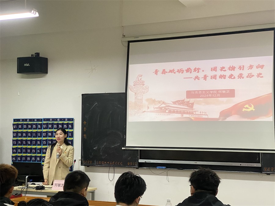 马克思主义学院教师何敏芝详细讲述了中国共青团的发展历程,强调了马克思主义思想是我们立党立国、兴党兴国的根本指导思想,她鼓励同学们开阔思维、大胆创新、追寻梦想,并对青年大学生日后的实践工作做出具体指导,为广大学子学习及工作实践指明了奋斗方向。