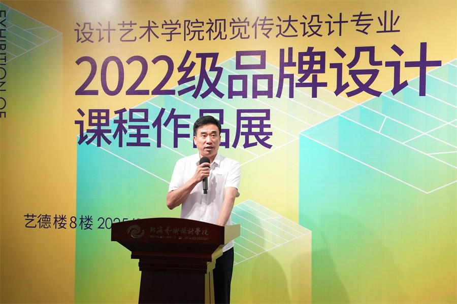 副校长陶立阳为此次展览致辞。他表示,此次作品展集中展现了学校在新文科建设背景下,探索“人工智能+设计教育”创新模式、服务区域经济发展的阶段性成果,生动诠释了“以美育人、以文化人”的办学特色。面向未来,设计教育要持续深化产教融合,加强与地方政府、企业的紧密合作,打通“作业-作品-产品”的价值转化链条,将智能技术深度融入课堂,推动教育与科技、产业、创新、实践的融合发展。希望学生以此次展览为新起点,始终坚守“设计为民”的初心,在未来职业道路上,既要成为商业价值的创造者,更要勇做真善美的传播者。