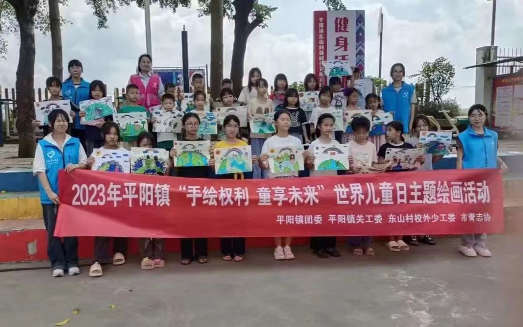 接下来我们将镜头转移到东山村这里,今天在这里开展的是“手绘权利,童享未来”世界儿童日主题绘画活动。志愿者教给小朋友们的不仅仅是渲美绘画的知识和技巧,还有对儿童的世界启蒙。志愿者们将一颗颗希望的种子埋在他们心中,静待有一天破土而出。小朋友们画出的一个个地球,是他们对世界的探索,是他们对未来的渴求,是他们新人生的起点。
