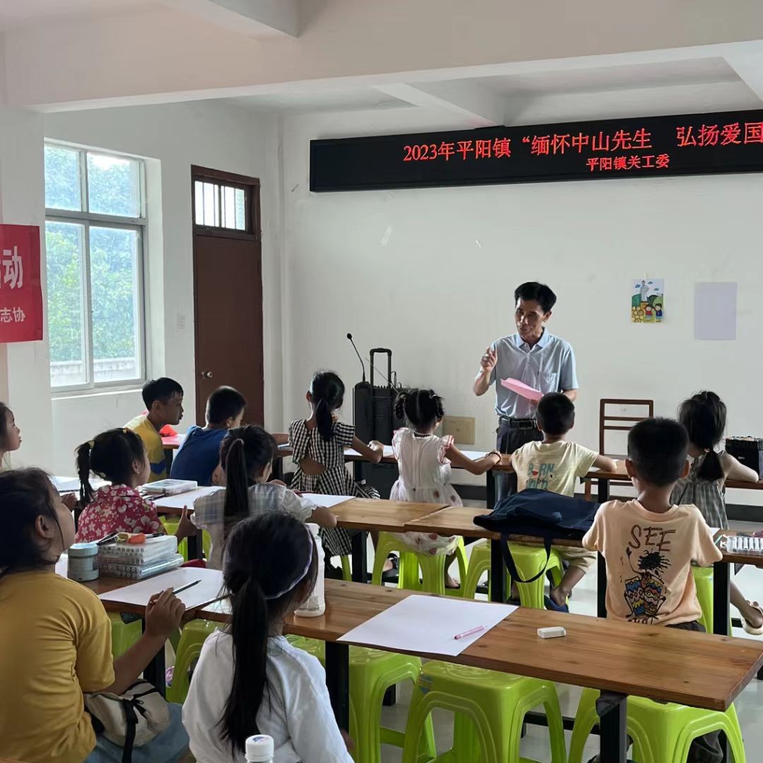 最后我们来到了孙东村,这里正在举行“缅怀中山先生,弘扬爱国精神”活动。伟大的孙中山先生,是革命的先行者,他身上的爱国精神值得我们学习传承。老师为小朋友们介绍讲述了孙中山先生的事迹,讲述完毕,小朋友们都被孙中山先生的事迹深深震撼,立志要向孙中山先生学习。在老师的引导演示下,小朋友们纷纷画出了孙中山先生的雕像画。在画中我们可以清楚地看到,孙中山先生的画像下站着两位少先队员,他们代表着中国少先队员们对孙中山先生真挚的敬意。
